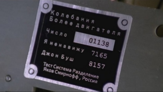 Иногда сразу ясно, что кто-то просто захотел пошутить или просто высказаться. Например, в сериале “Chuck” («Чак») можно найти любопытную деталь, где вместо номера серии у этой детали написано что-то совсем другое. Хотя, по правде говоря, на этой табличке все вызывает недоумение.