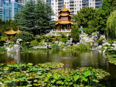 Сад был открыт в 1980-е годы и наполнен традиционной китайской культурой – павильоны, башни, бамбук, маленькие водопады, ручьи, скульптуры Будды и так далее.