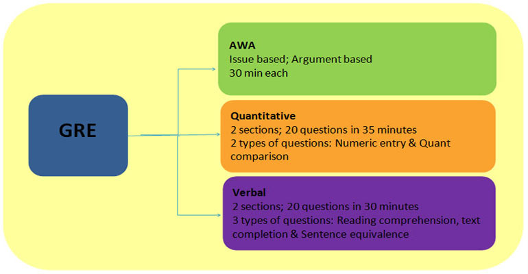 General test состоит из трех частей: verbal reasoning, quantitative reasoning, analytical writing.