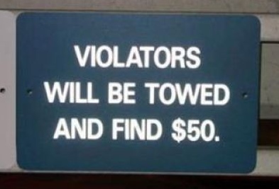 Перевод объявления: “Нарушители будут отбуксированы и найдут $50”.