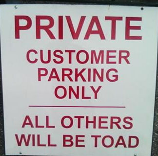 Перевод фразы: “Парковка только для клиентов. Все остальные станут жабами”.
