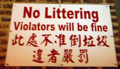 Конечно же, этой табличкой хотели сказать, что нарушители должны будут заплатить штраф за мусор. Но получилось совсем другое: “Не мусорить. У нарушителей все будет хорошо”.