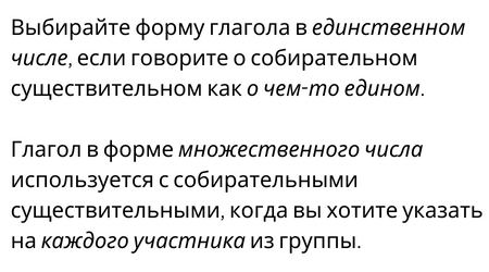Собирательные существительные в английском называются collective nouns. Они обозначают группу кого-то или чего-то как целого или каждого представителя группы по отдельности. По этой причине важно обратиться к грамматике английского языка, чтобы понять, в форме какого числа выбирать глаголы для собирательных существительных.