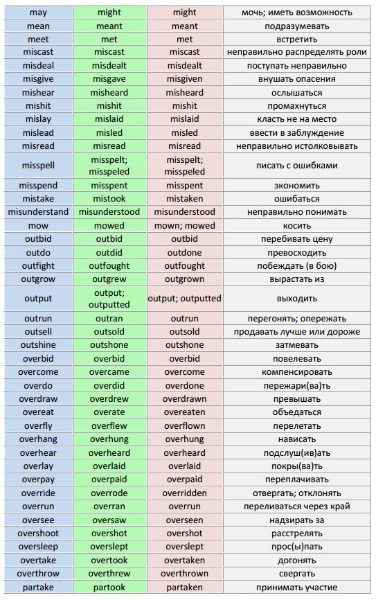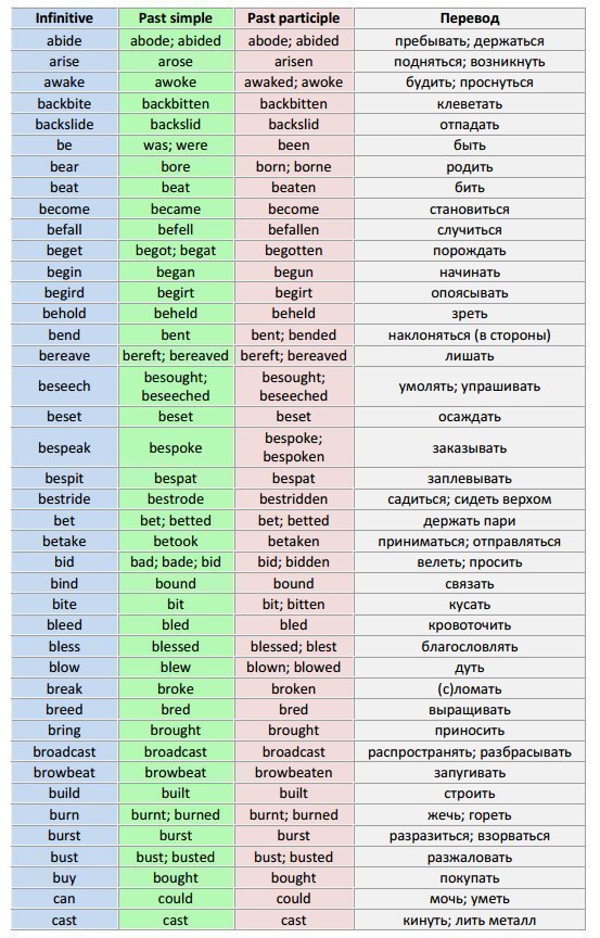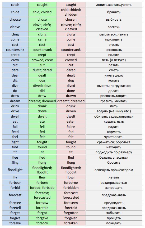 Таблица неправильных глаголов английского языка + стишок для запоминания
