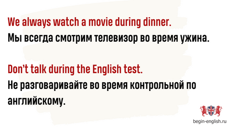 NB! Если вы хотите сказать о том, как долго происходит какое-либо действие, то используйте for, а не during.