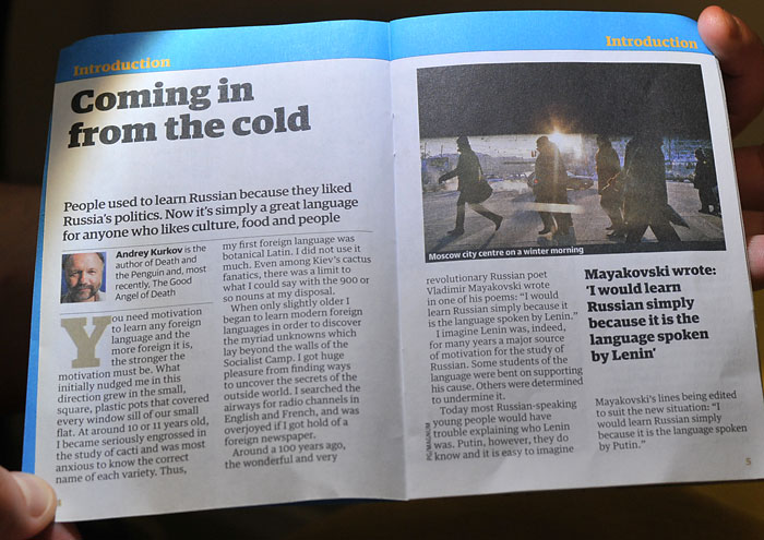 Вот как по–английски выглядит цитата из Маяковского. Заметьте, что предисловие писал соотечественник. Я русский бы выучил только за то, что им разговаривал Ленин.
