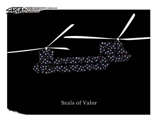 Надо сказать, что именно "Морские котики" провели операцию по ликвидации Усамы Бен Ладена. Поэтому для американцев это настоящие герои. После падения вертолета появились вот такие патриотические картинки, которые были опубликованы в официальной прессе.