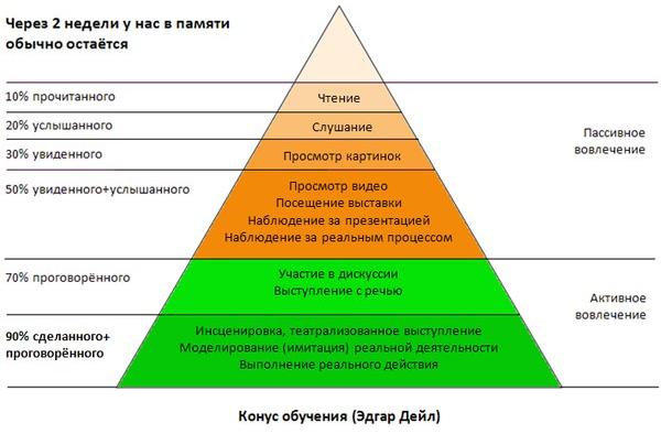 Эдгар Дейл в 1969 году выявил наиболее эффективные способы обучения.