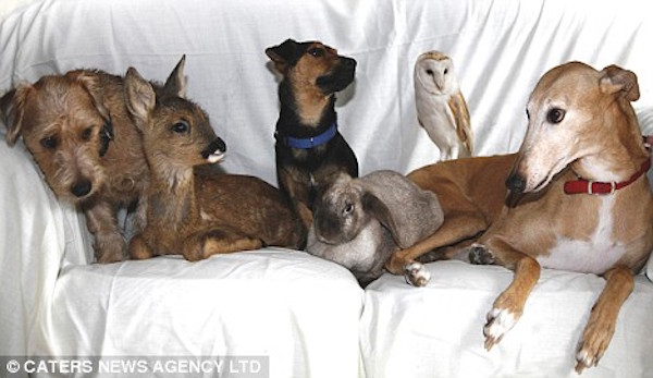 Jasmine held no prejudice against the animals she would care for. The list of stray waifs nursed by her included several puppies, foxes, a fawn, 4 badger cubs, 15 chicks, 8 guinea pigs, 15 rabbits, a deer and a goose.