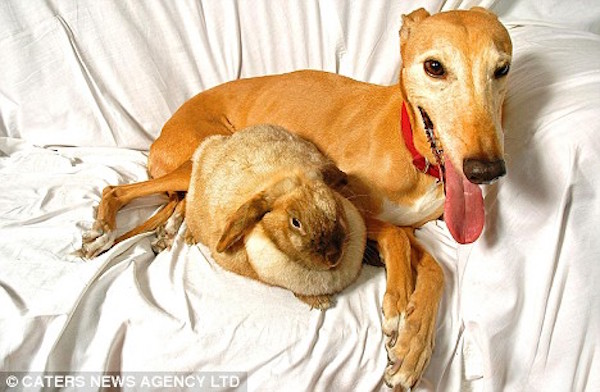 “But she is like that with all of our animals, even the rabbits which greyhounds usually chase down the track.”