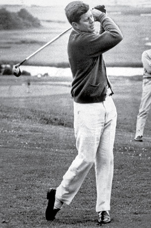 J.F.K., a gifted golfer, didn't want to be photographed on the links. He was afraid of inheriting Eisenhower's image, as a man putting his way through is presidency.