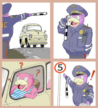 Slowpoke is often used in combo threads, when people attempt to post three consecutive pieces of the character in a row. One of the earliest archived threads with a successful Slowpoke combo took place on April 22nd, 2007 and resulted in the original poster getting banned by moot for posting too quickly.