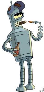 Робот Бендер, полное имя Bender Bending Rodriguez (дословно «Сгибальщик Сгибающий Родригес») - комический антигерой мультсериала "Футурама", сквернослов, алкоголик, заядлый курильщик сигар, почитатель порнографии для роботов и клептоман.
