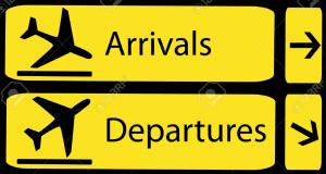 Надписи 'arrivals' (прибытие) и 'departures' (отправление) вы могли видеть в расписании самолетов (поездов) в аэропорту или на вокзале.