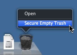 В настольных операционных системах существует понятие "корзина" — временное хранилище для удаленных файлов с возможностью восстановления. Команда очистки корзины (удаление файлов навсегда) в англоязычном интерфейсе называется 'empty trash'.