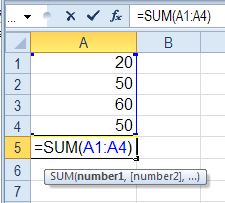 Функция суммирования в электронных таблицах (MS Excel, LibreOffice Calc и т.п.) с англоязычным интерфейсом называется 'SUM'.