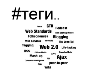 В русском языке слово "тег" используется применительно к меткам статьи, записи в блоге, которая служит для группировки элементов, помеченных одним и тем же тегом. В Твиттере для этой цели исмользуются хэштеги с символом # (решётка).